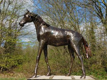 Diese einzigartige Metall-Pferdestatue strahlt Kraft, Eleganz und Handwerkskunst aus und ist ein echtes Statement.
