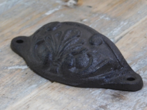 Griff für Schublade oder Schiebetür außen, antikes Möbelzubehör aus Eisen mit Motiv.