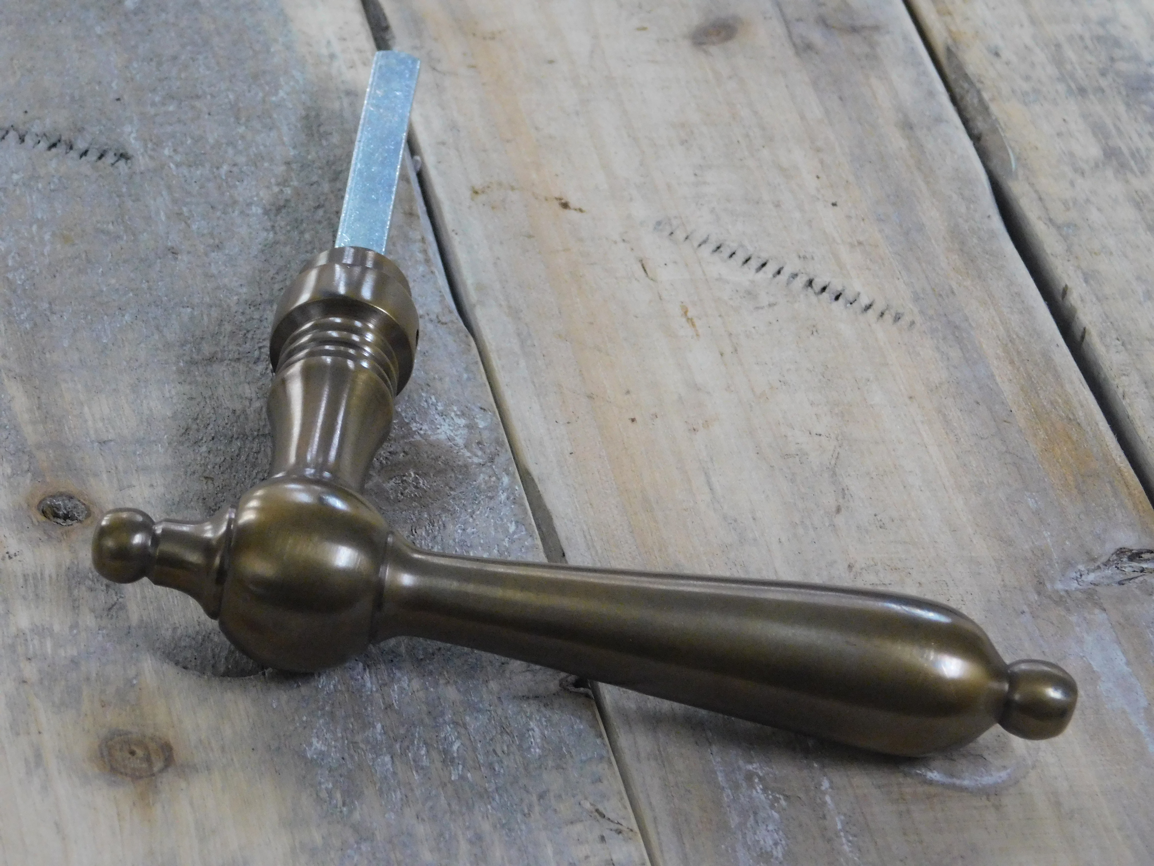 made of patinated brass. It is ideal for the renovation of antique doors. It can be used as a room door handle or as a door handle for the front door.