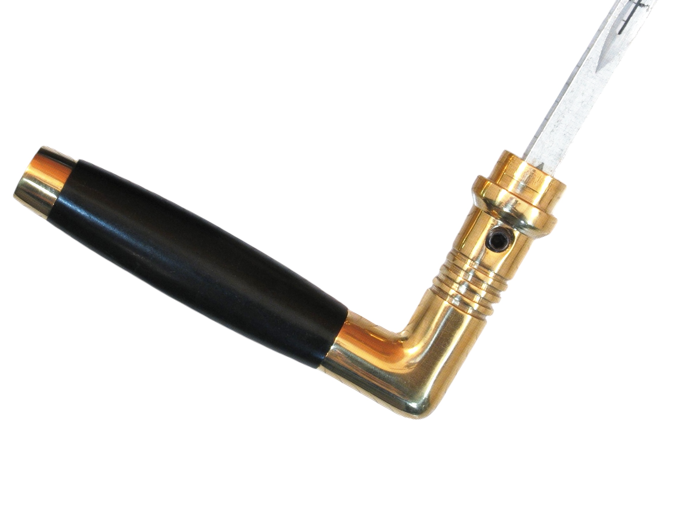 Een hoogwaardige deurkruk, gemaakt van messing (met een glanzend oppervlak). Het handvat is zwart en gemaakt van Ebben hout, een perfecte combinatie met messing.