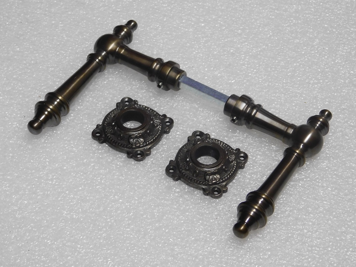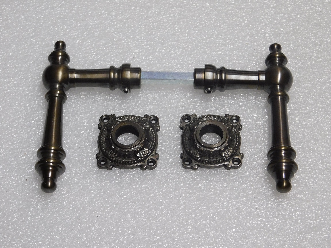 Montreux Door Handle Set with Rosettes - Dark Patinated Brass