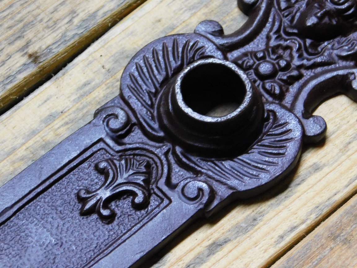 Geef je deur direct een unieke, klassieke uitstraling met deze prachtige vintage deurplaat van massief gietijzer.