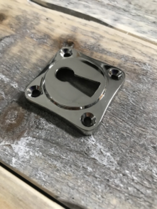 Stijlvol slotrozet, volledig van gepolijst nikkel.