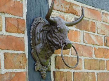 Der Stierkopf ist mit einem Ring an der Nase versehen, so dass er nicht nur ein dekoratives Element ist, sondern auch funktionell genutzt werden kann, um zum Beispiel ein Handtuch oder andere Gegenstände aufzuhängen.