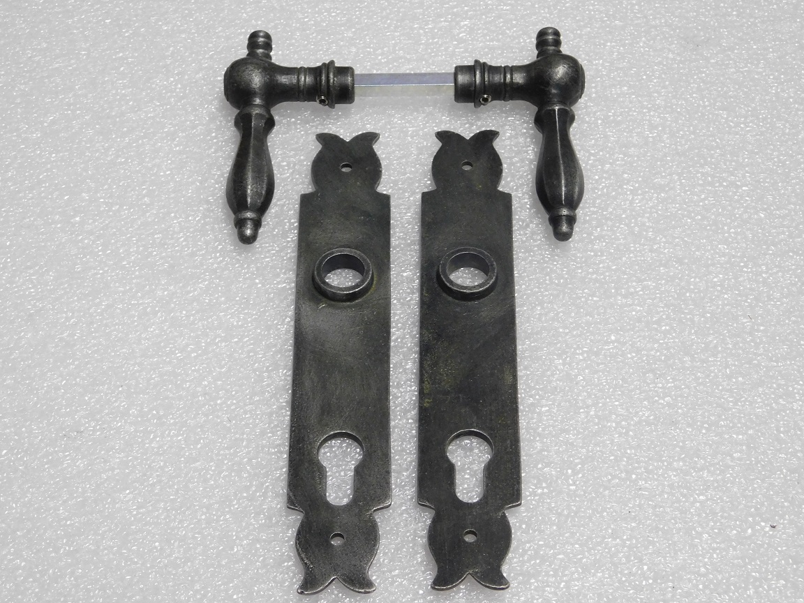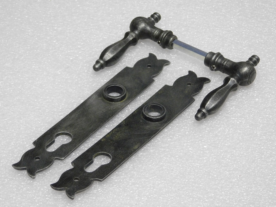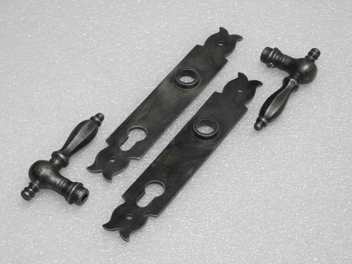 Lieferumfang: 1 Set, 2 Griffe + 2 Türplatten und Vierkantstift, Gusseisen