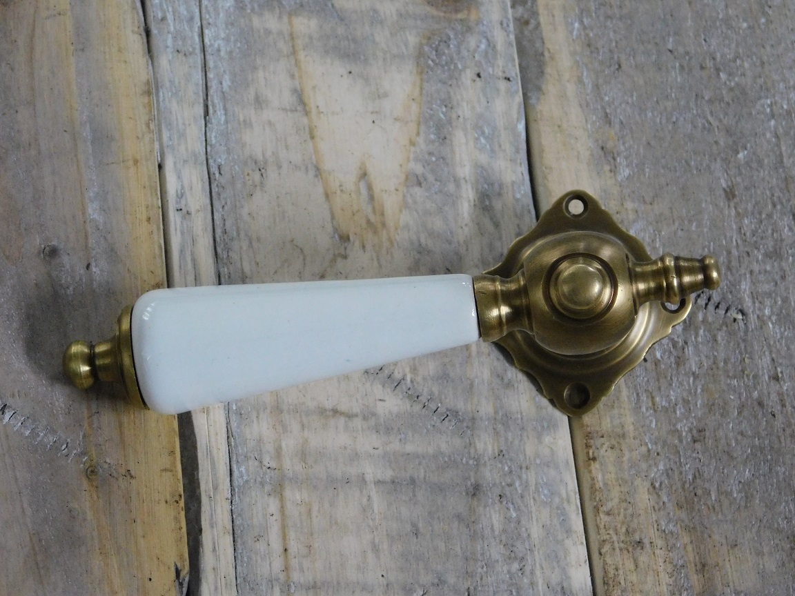 Leveringsomvang: 1 deur meubels Entree deur: 1 knop, 1 deurknop, 4 rozetten, gepatineerd messing met porseleinen ivoorkleurige, PZ
