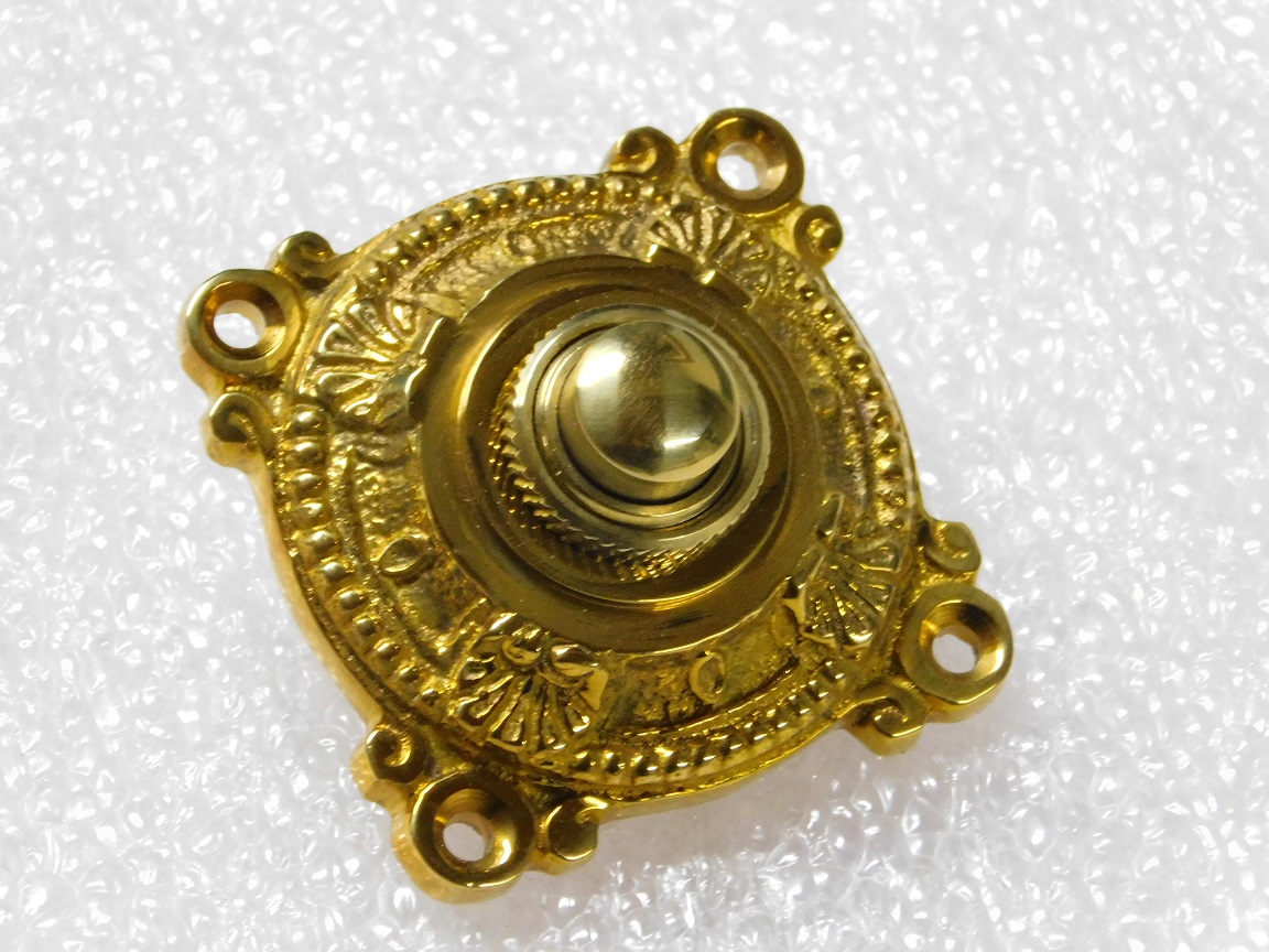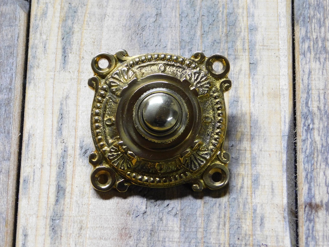 This elegant doorbell is made of solid brass and carefully polished for a beautiful, shiny appearance.