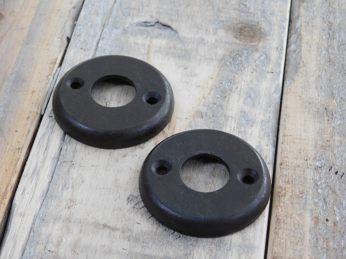 Deurbeslag-set met 2 klinken, 2 rozetten en een doorn, donkerbruin.