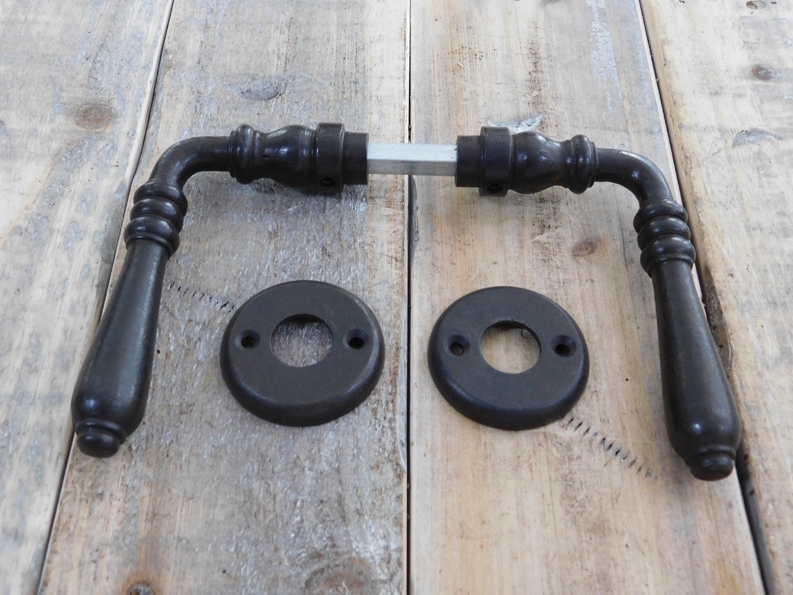 Deurbeslag-set met 2 klinken, 2 rozetten en een doorn, donker bruin