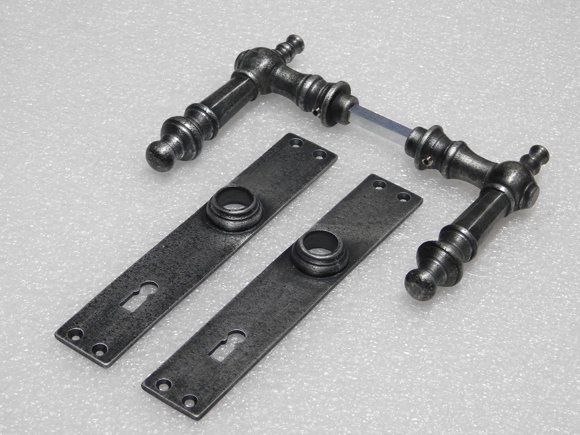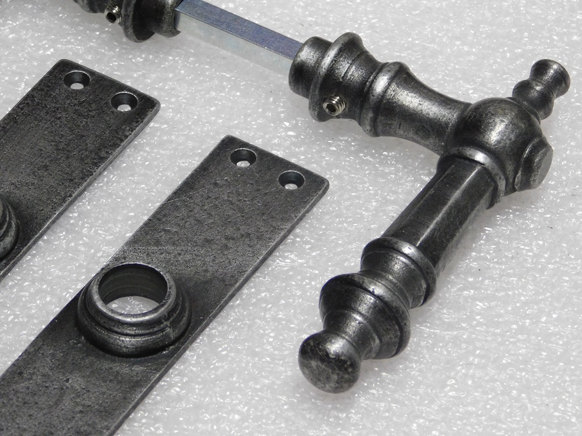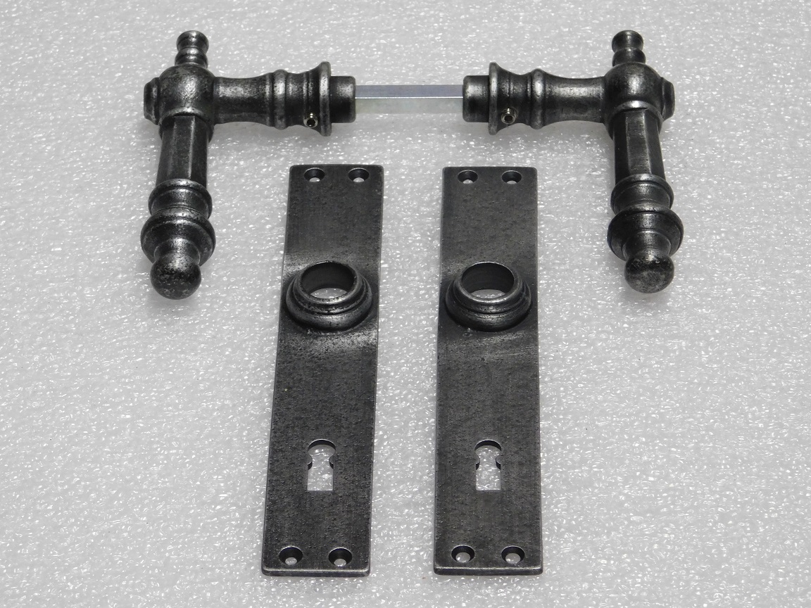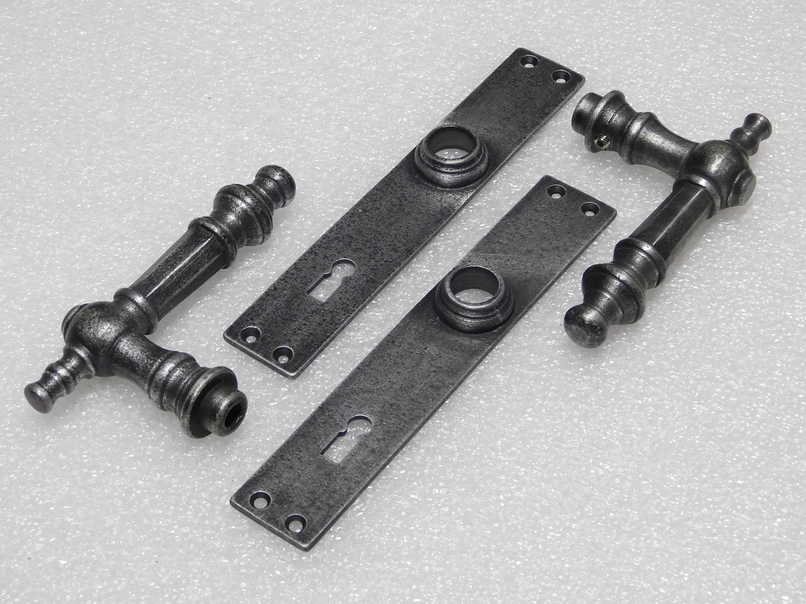Door Hardware Set - Victoria Handles + Blanco BB 72 Door Plates - Cast Iron, Galvanised