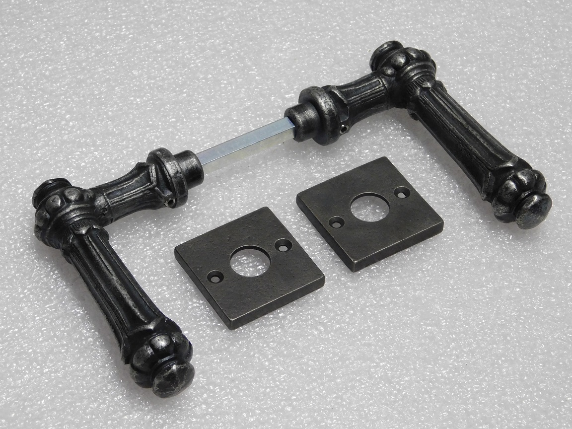 Set Klinken Oxford + Klinkrozetten Vierkant - Gietijzer Verzinkt