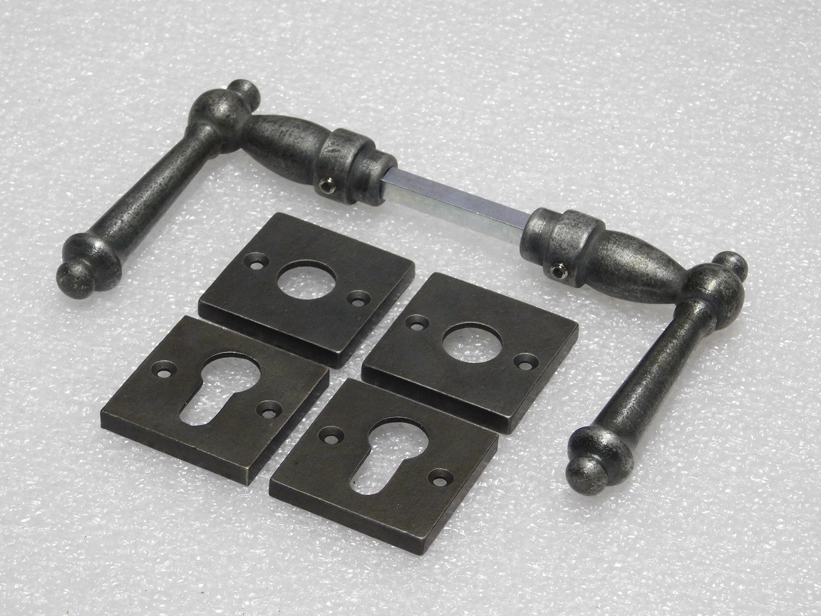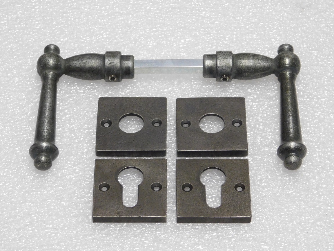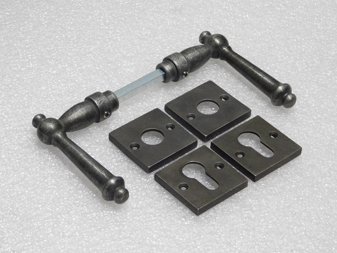 Set Türgriffe York + Türgriff- und Schlossrosetten, Vierkant – Gusseisen, verzinkt