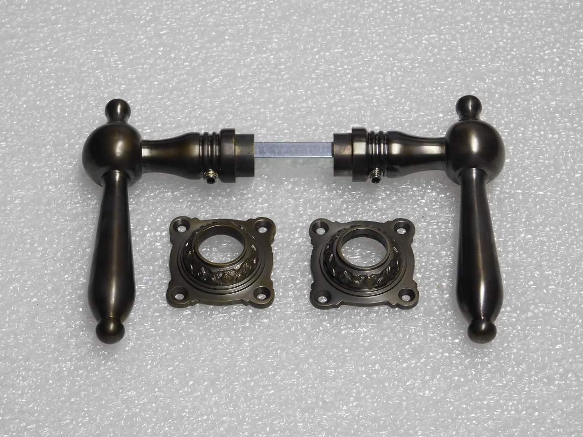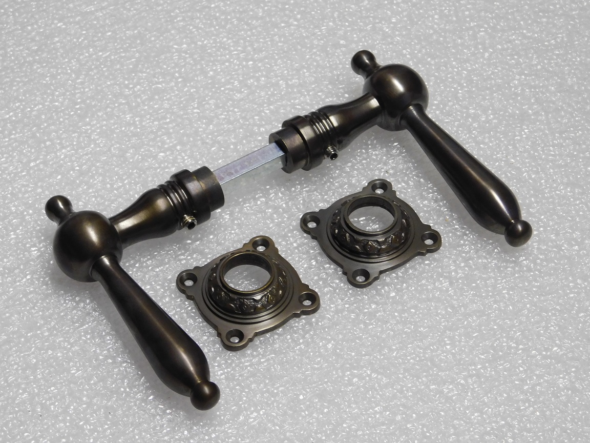 Türgriff-Set Revo mit Rosetten – Dunkel patiniertes Messing