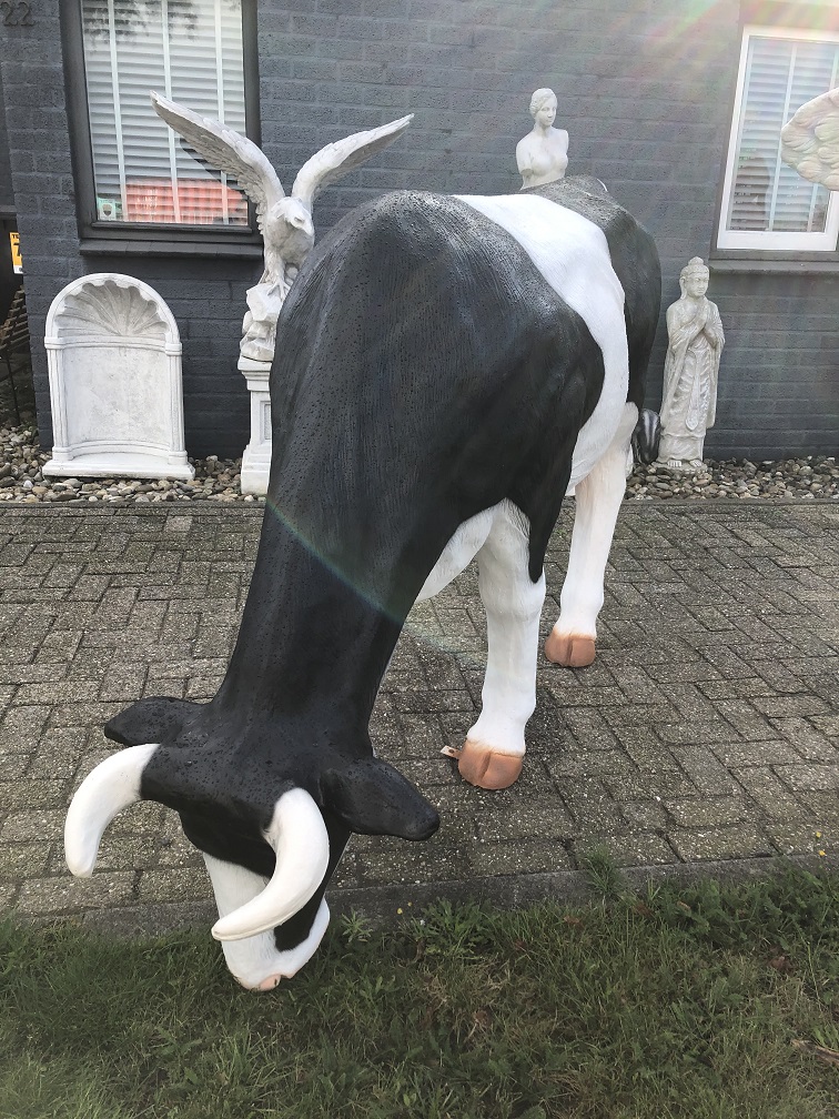 Beautiful sculpture of a large cow, beautifully colored, a real eye-catcher!