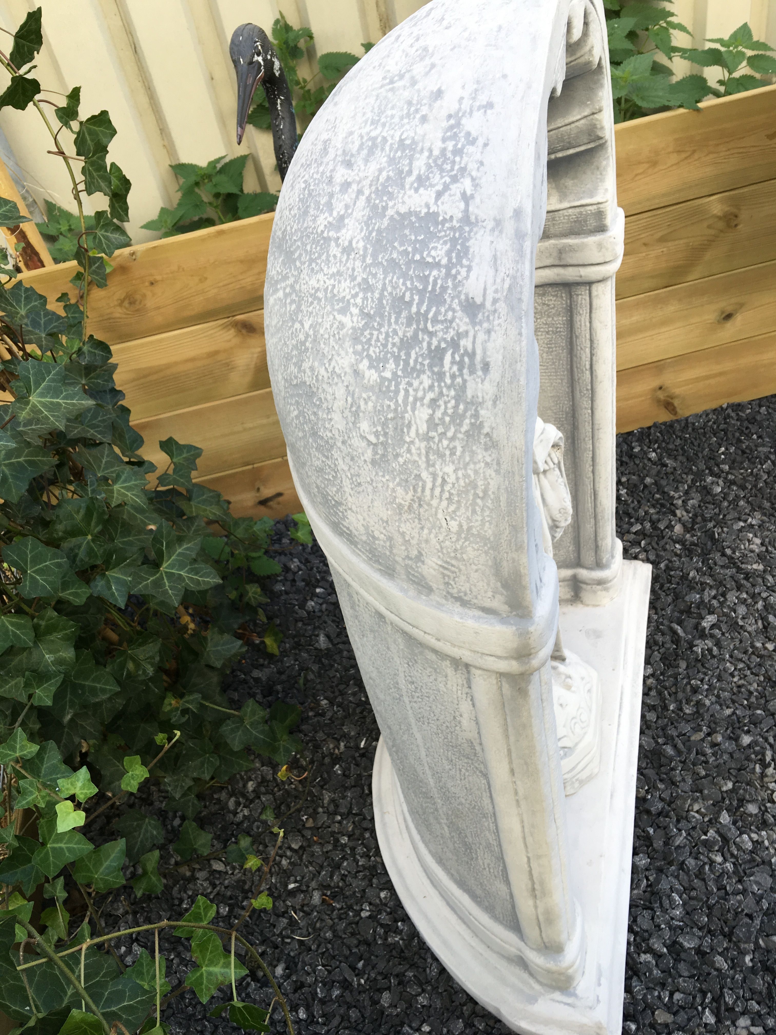 Maria beeld in bidkapel tuinbeeld massief gegoten steen, prachtig vormgegeven.