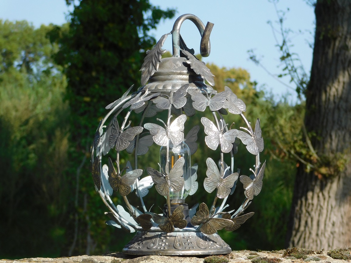 Leveringsomvang: 1x lantaarn rond met vlinder, metaal