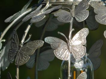 Het ronde ontwerp is verfraaid met talloze gedetailleerde vlinders, die een vleugje elegantie en vrolijkheid toevoegen aan deze decoratieve lantaarn.