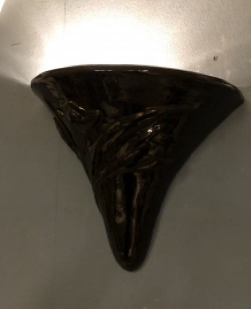 Mooie strakke wandlamp in zwart terracotta steen, zeer fraai, art nouveau, jugendstyle.