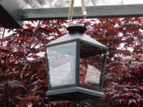Prachtige lantaarn om op te hangen met touw. Ook heel decoratief om gewoon als tuindecoratie ergens neer te zetten!
