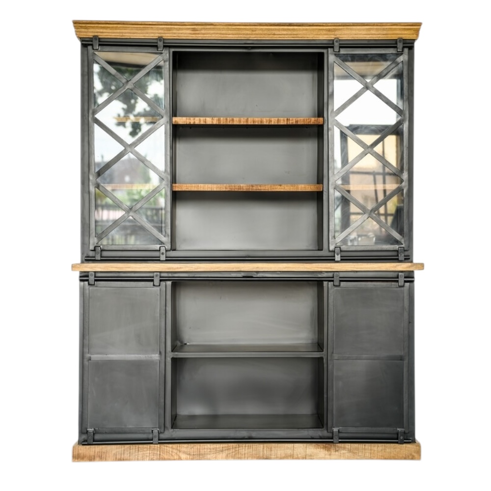 Schöner industrieller Hängeschrank aus Kolonialholz mit Metalloberfläche