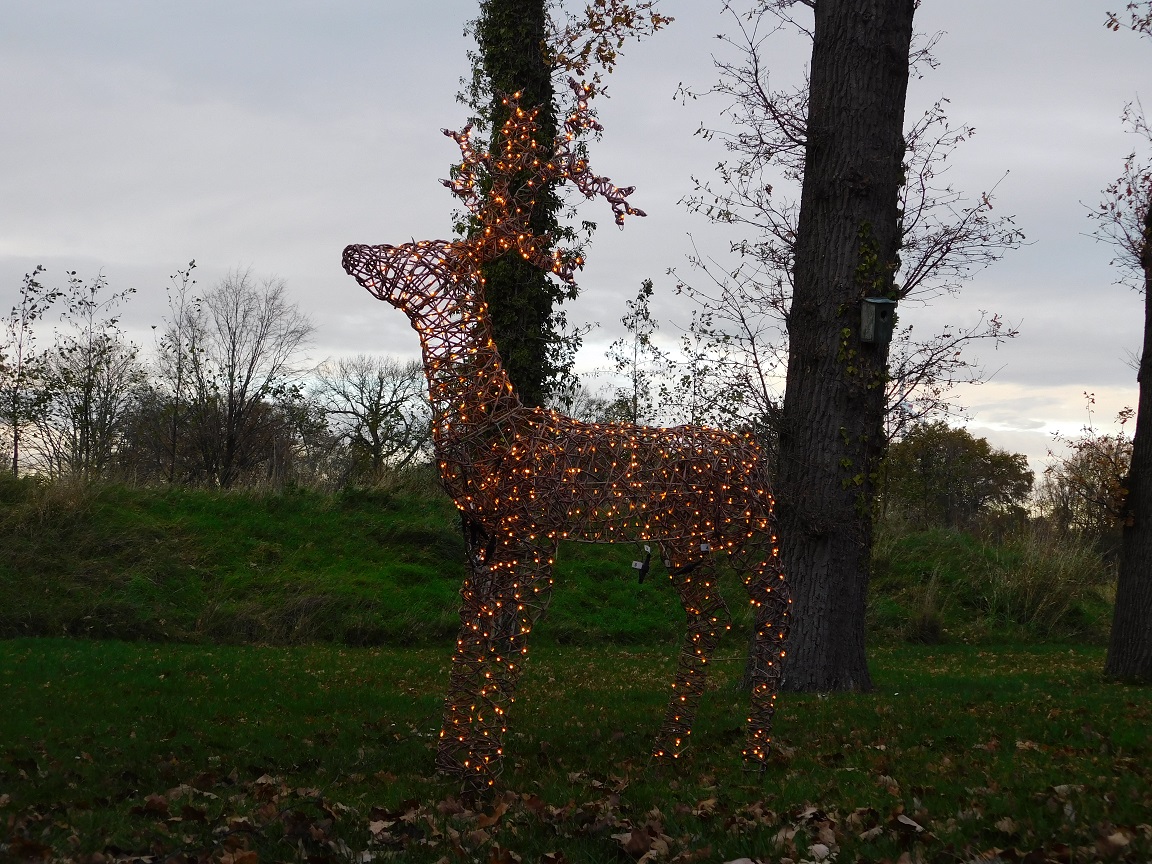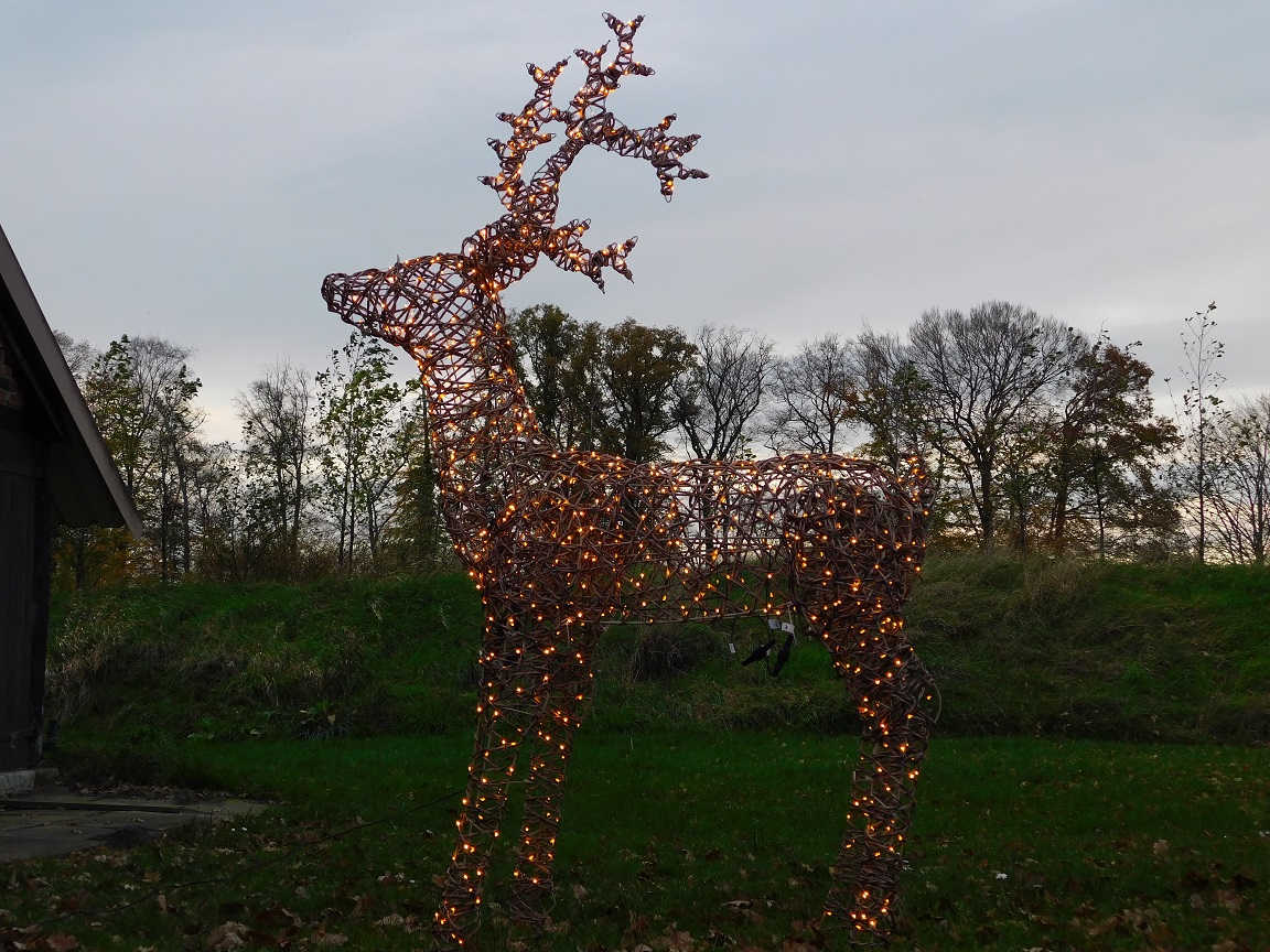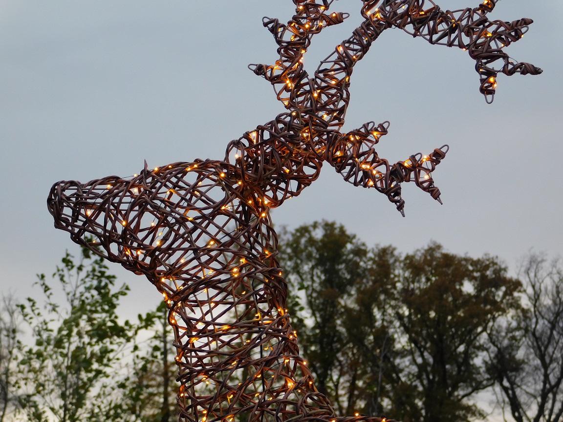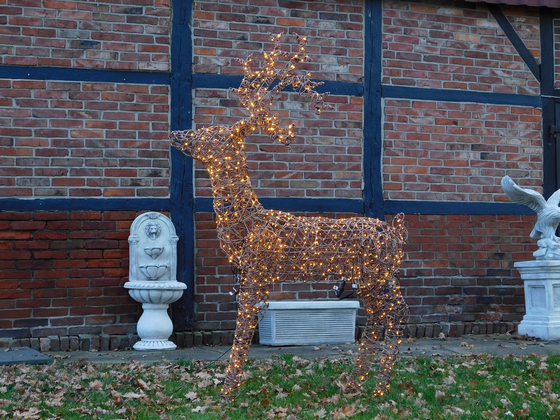 Mit seiner großzügigen Höhe von ca. 175 cm und einer Breite von 110 cm ist dieses Reh ein echter Blickfang während der Feiertage.