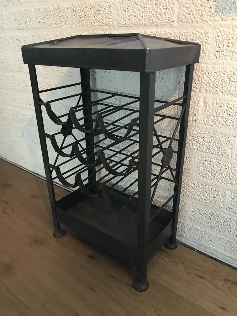 Artikelnr: Wijnrek-wijnhouder-9-flessen-metaal-antiek-uniek