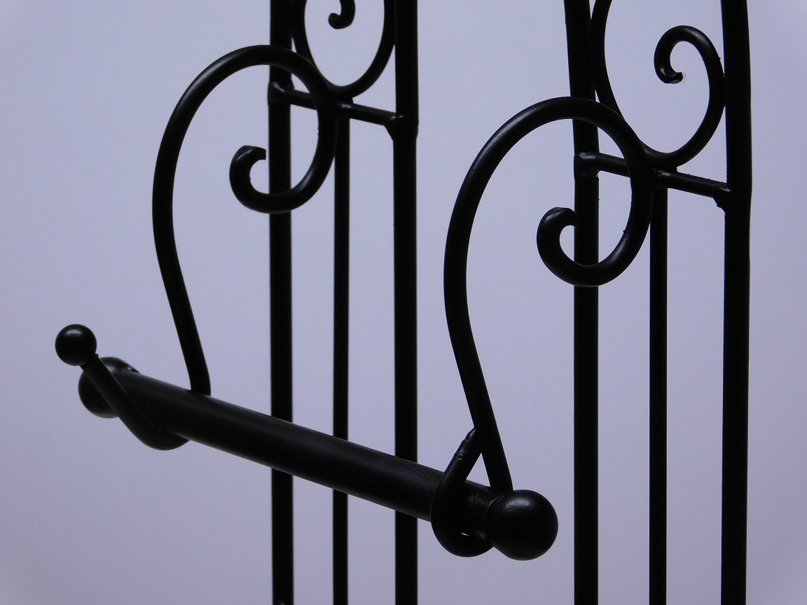 Dieser stehende Toilettenpapierhalter aus Schmiedeeisen kombiniert ein luxuriöses Aussehen mit maximaler Funktionalität.