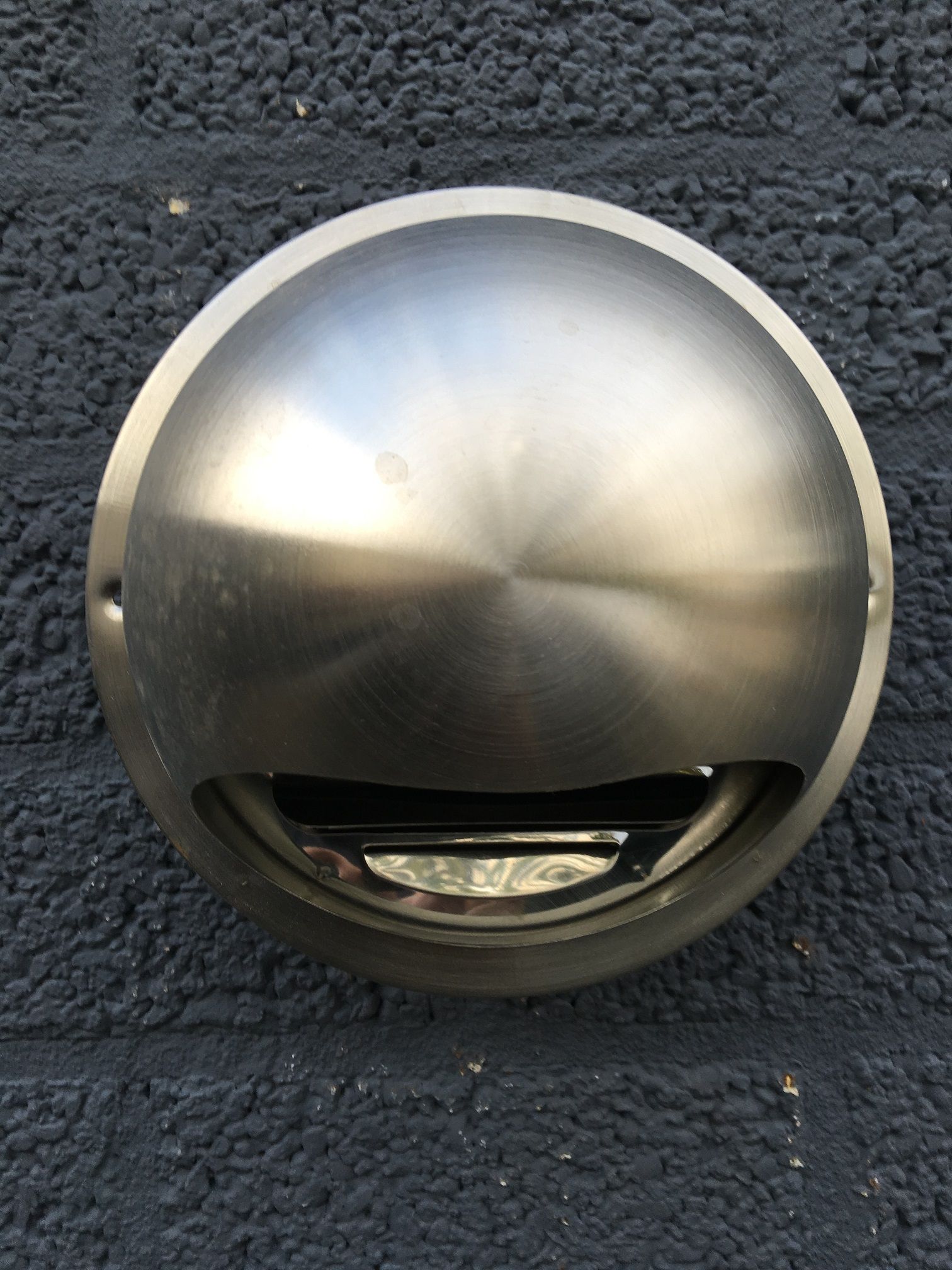 Luchtrooster, bolrooster, ventilatierooster, RVS.