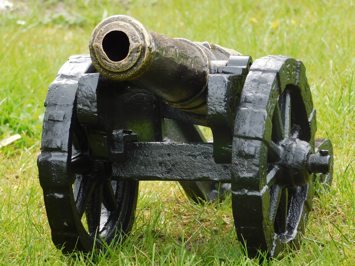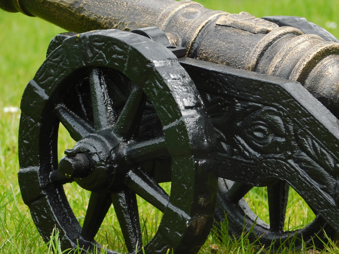 Dank des schweren Gusseisens steht die Kanone fest und stabil an ihrem Platz.