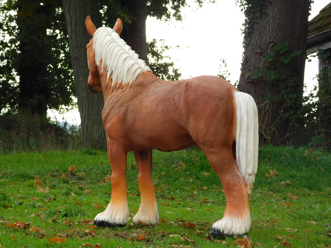 Dit prachtige paardenbeeld is tot in detail afgewerkt en oogt zeer realistisch – alsof er een echt paard in je tuin of interieur staat.