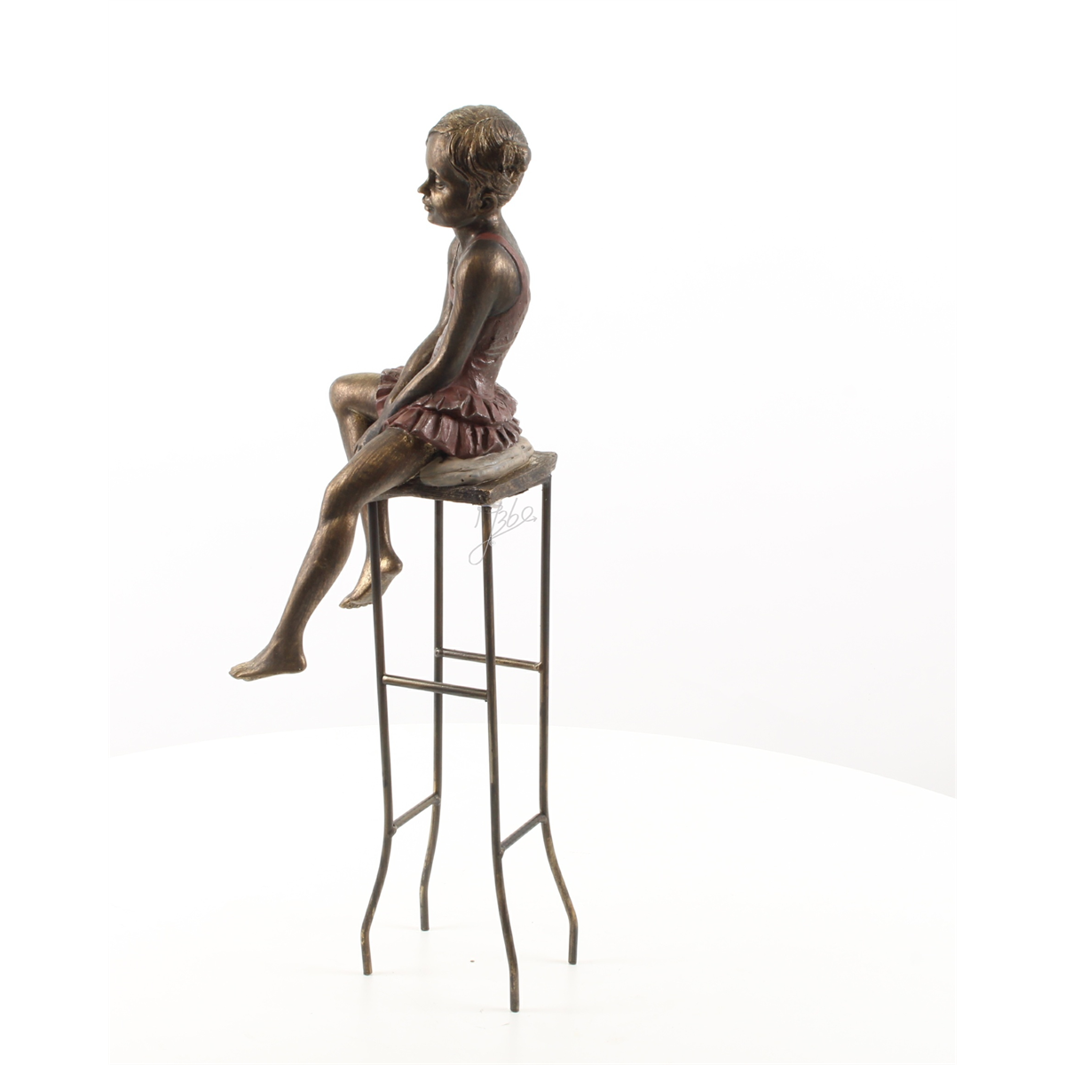 Beeld polystone van een klein meisje op stoel.