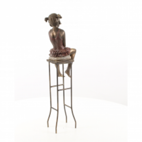 Prachtig beeld van een meisje op een stoel, beeld is van polystone en mooi in kleur gezet.