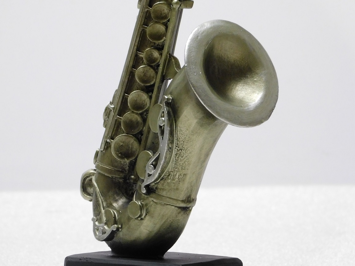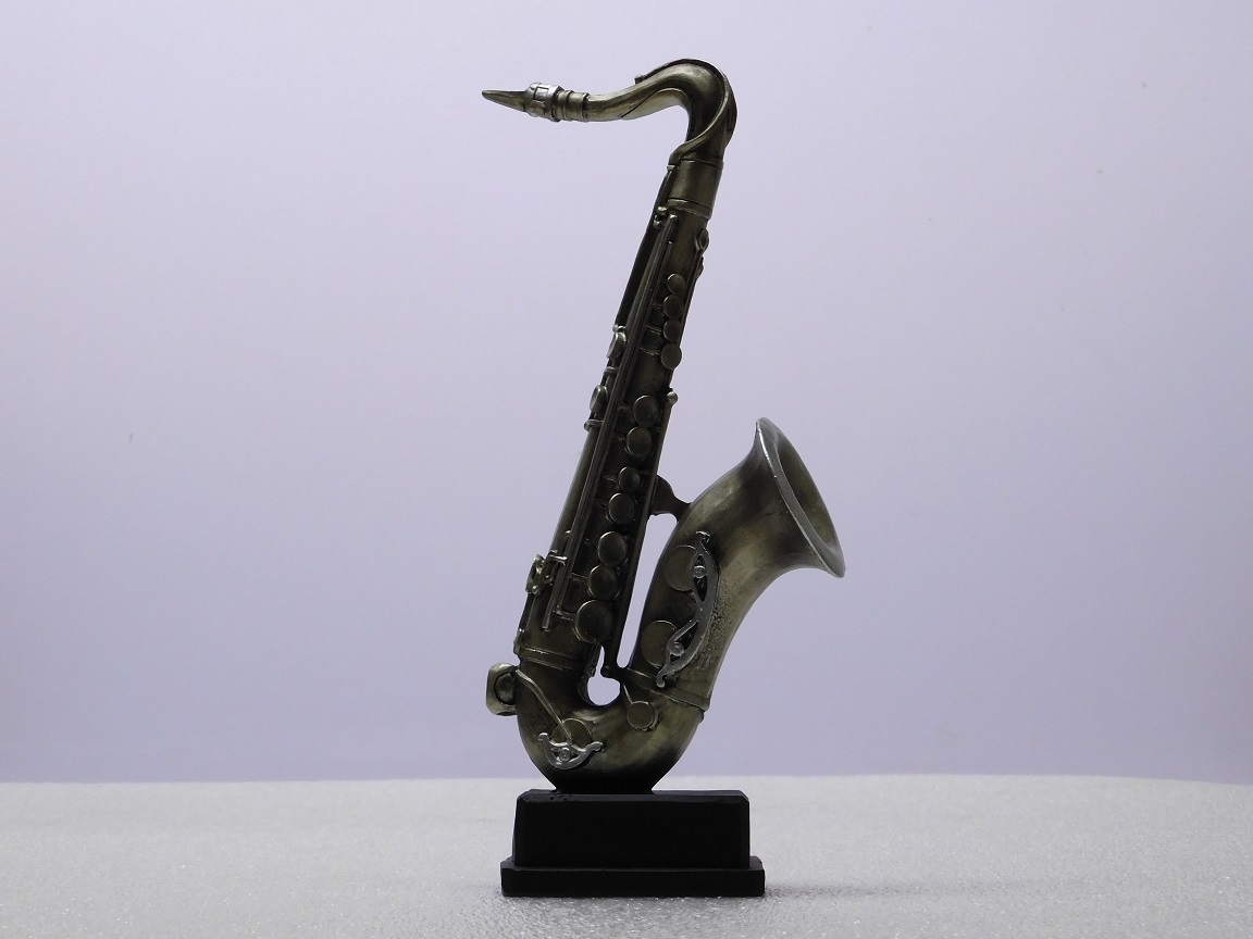 Breng muzikale sfeer in huis met dit stijlvolle saxofoon beeld van polystone, uitgevoerd in een prachtige retro look