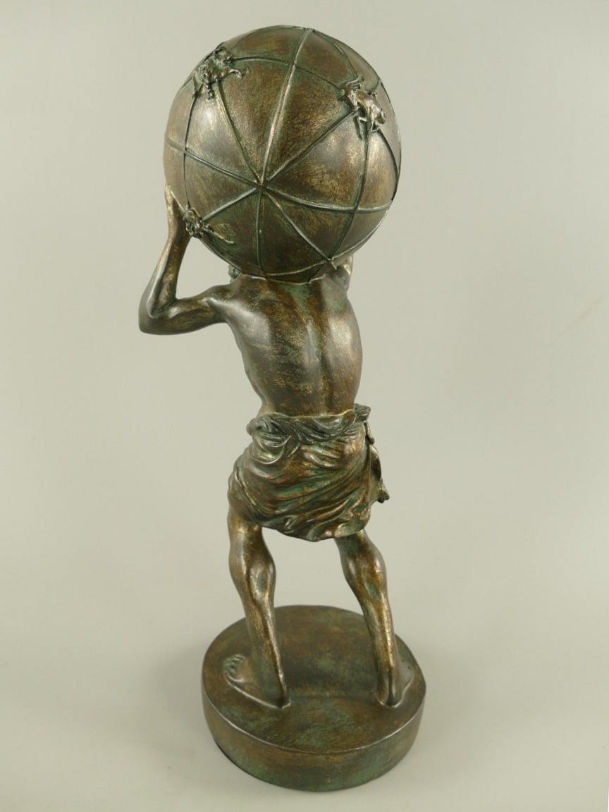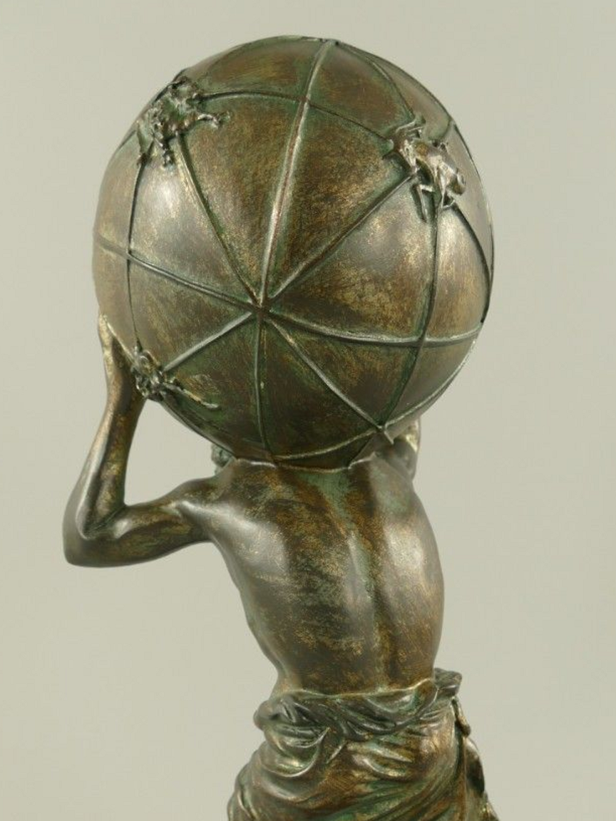 Dit prachtige beeld van Atlas, de mythologische figuur die de wereld op zijn schouders draagt, straalt kracht en doorzettingsvermogen uit.