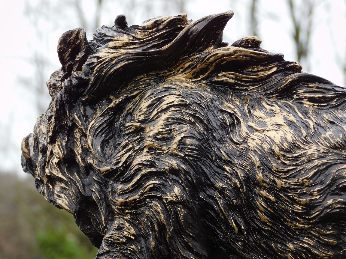 Het beeld is uitgevoerd in zwart met goudaccenten en is rijk gedetailleerd, waardoor het karakter en de kracht van het wildzwijn prachtig tot uiting komen.