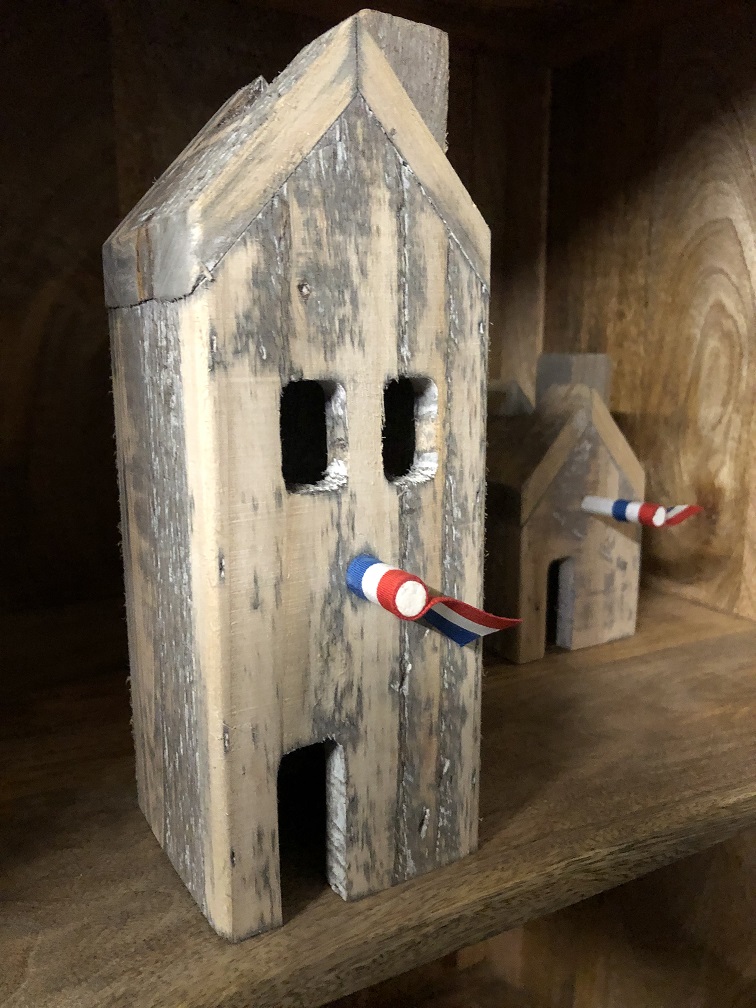 Decoratieve huisjes voorzien van NL vlag, geheel handgemaakt van hout, fraai!!