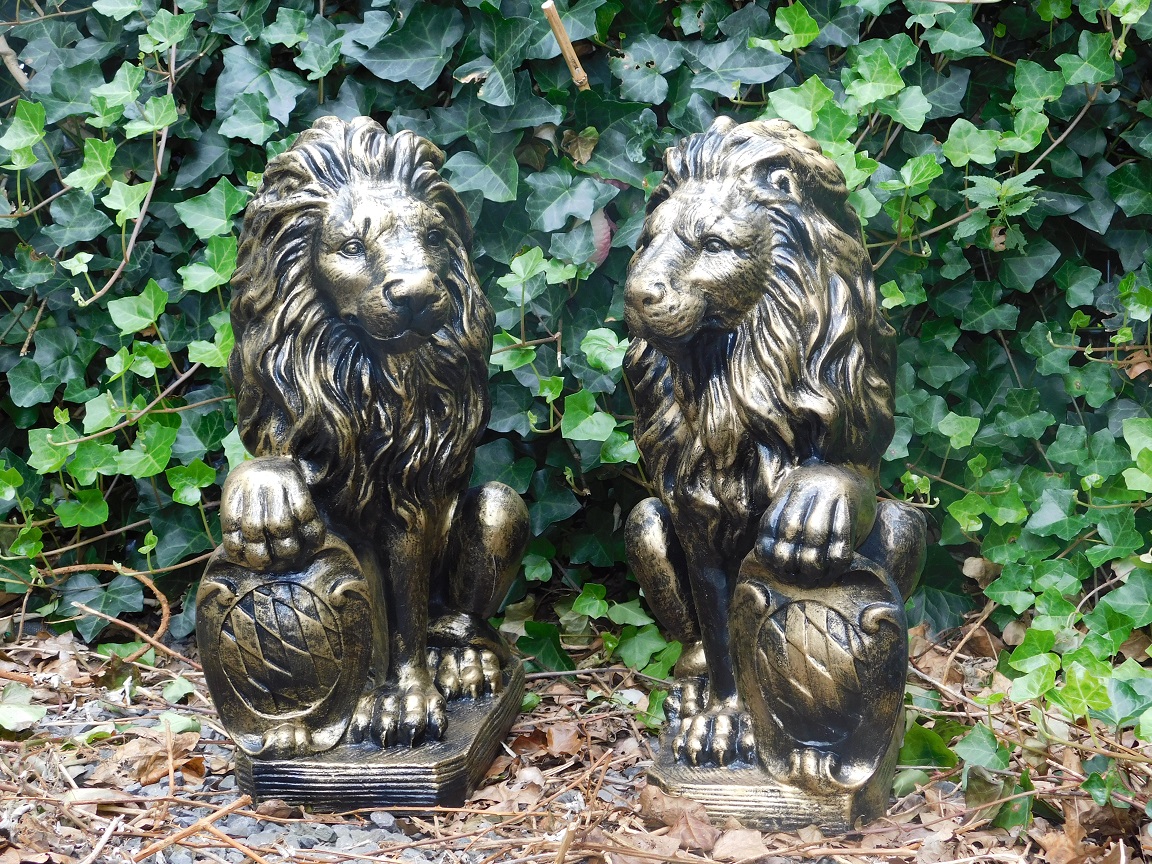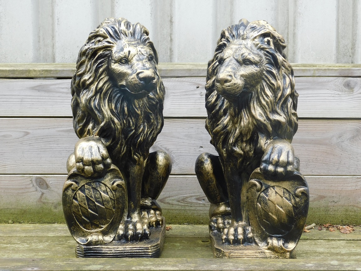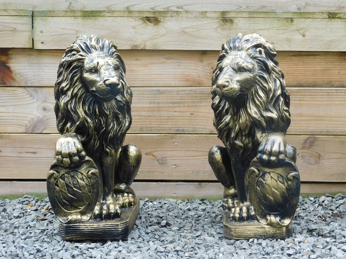 Leveringsomvang: 1x set van 2 leeuwen - zwart/goud - poly