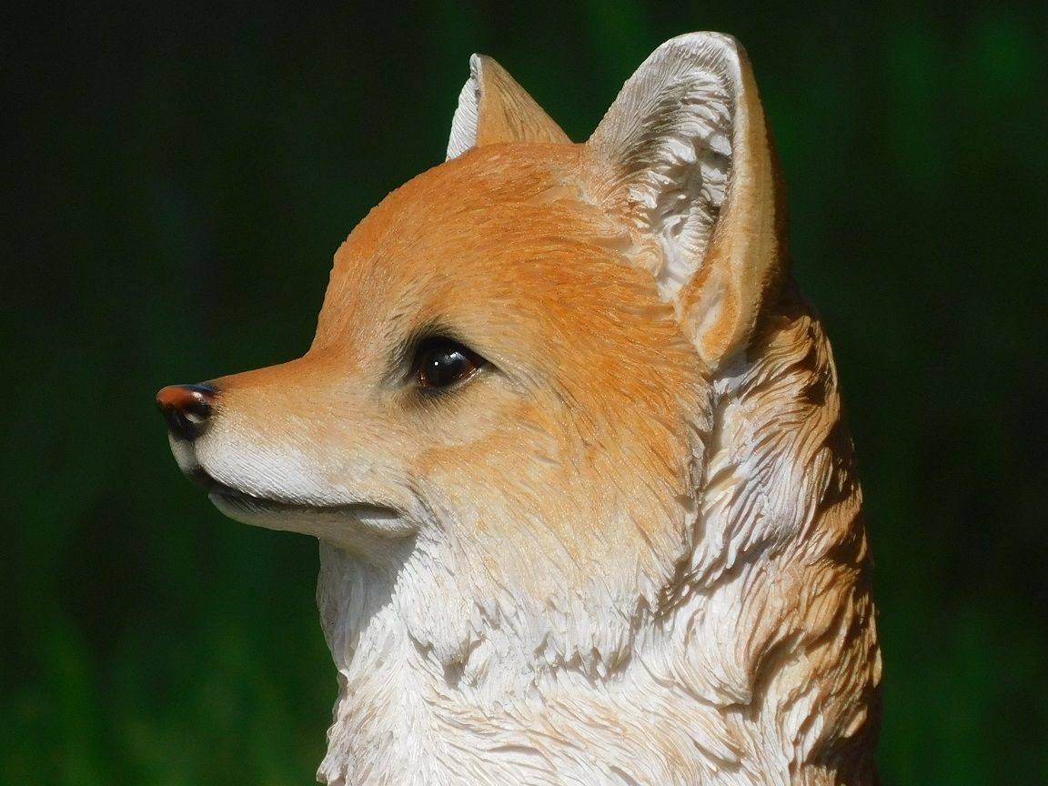 Sie ist mit einem schützenden UV-Lack versehen, der die Farben bewahrt und dafür sorgt, dass der Fuchs auch bei Sonneneinstrahlung sein lebendiges Aussehen behält.
