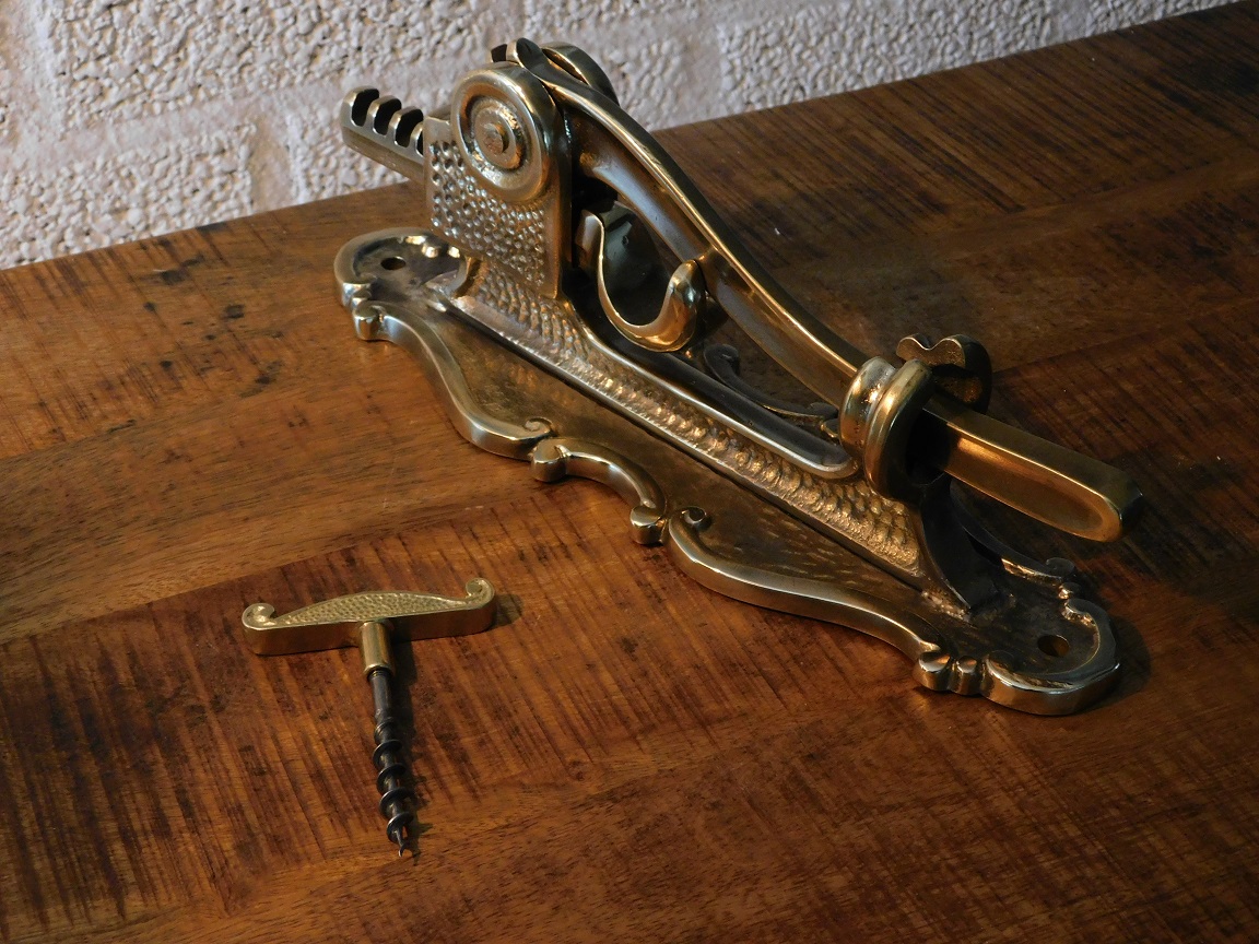 Wand wijnopener, hendel kurkentrekker messing, flesopener messing, heel fraai!! LAATSTE!!