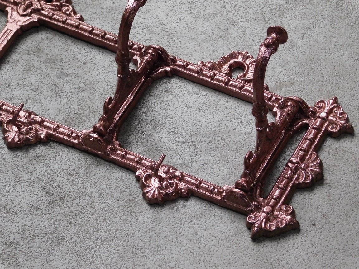 Made of durable cast iron and finished in a beautiful copper look, this coat rack is sure to attract the attention of your guests.