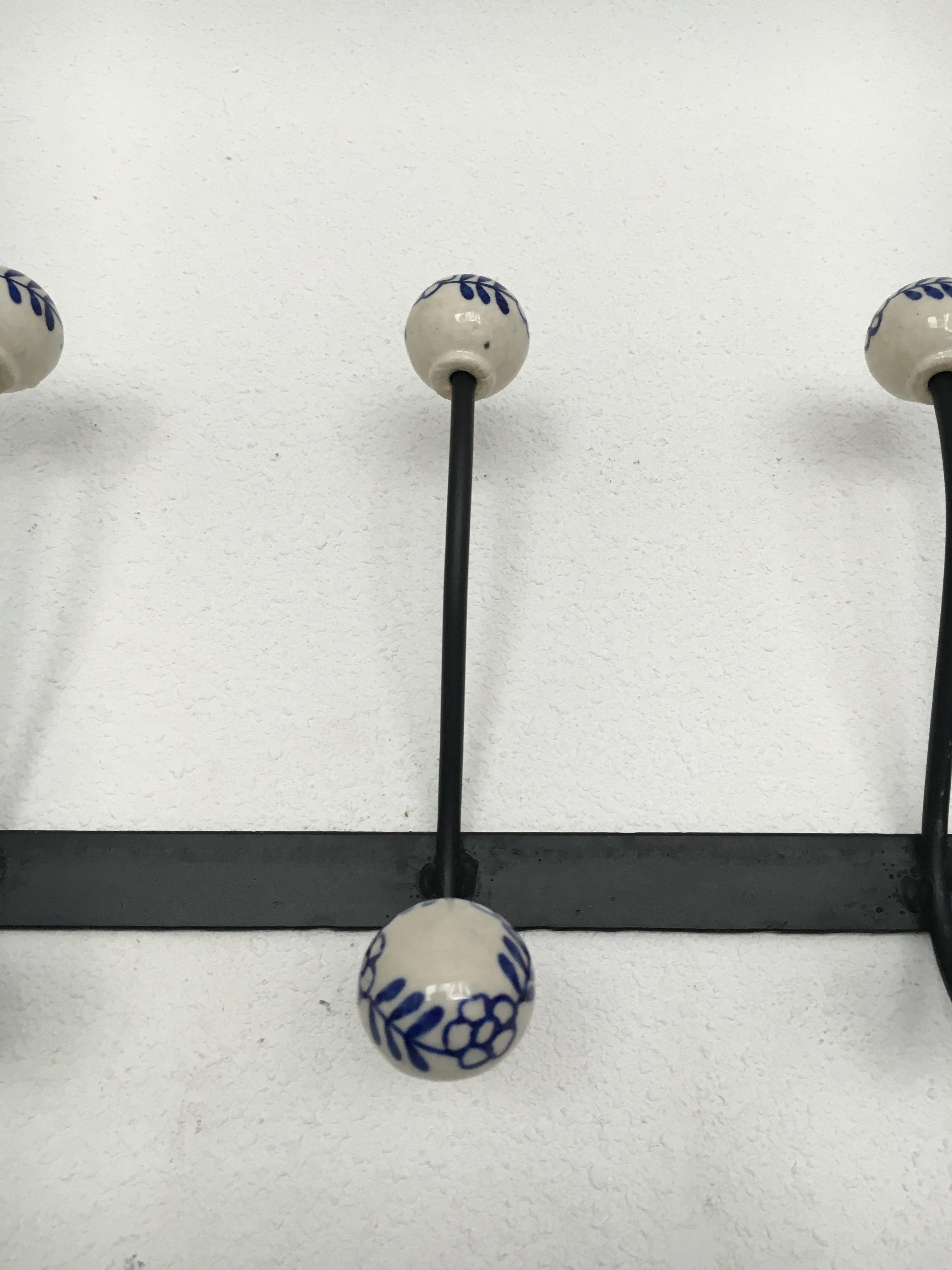 Een mooie en sierlijke kapstok met 8 haken, gemaakt van smeedijzer.