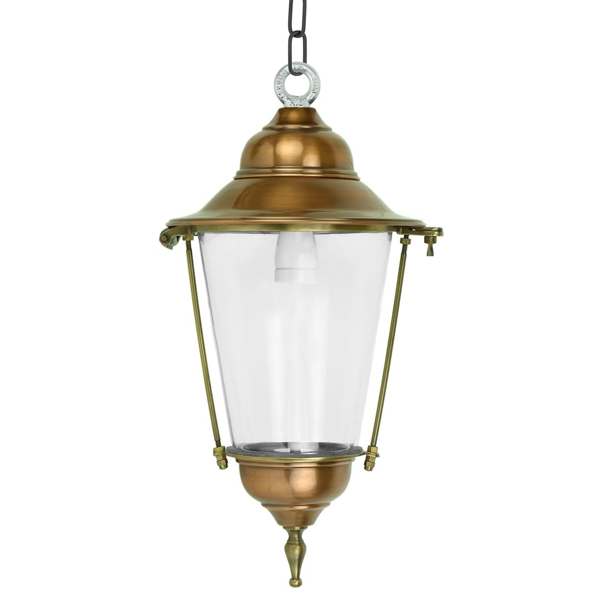 Het venster van deze hanglantaarn is gemaakt van echt helder mondgeblazen glas en de lantaarn is uitgerust met een witte porseleinen E-27 fitting.