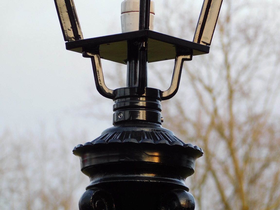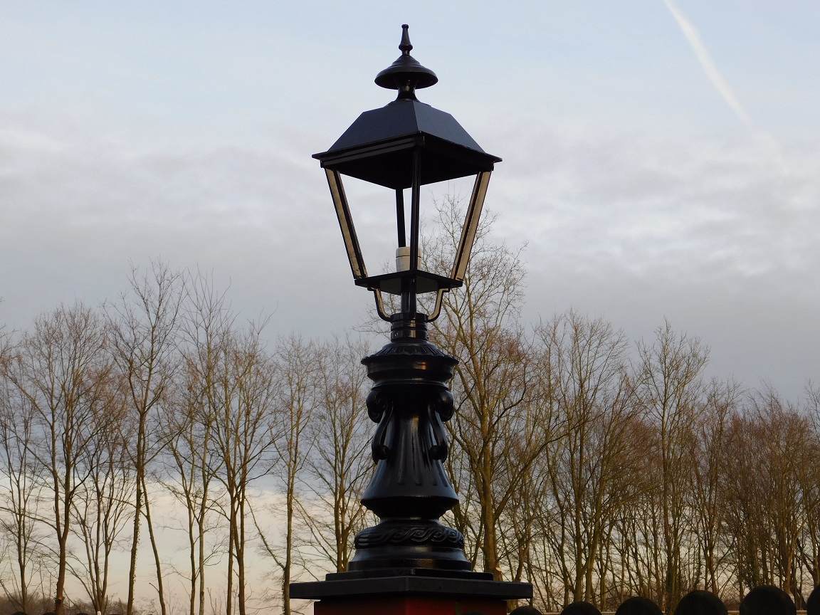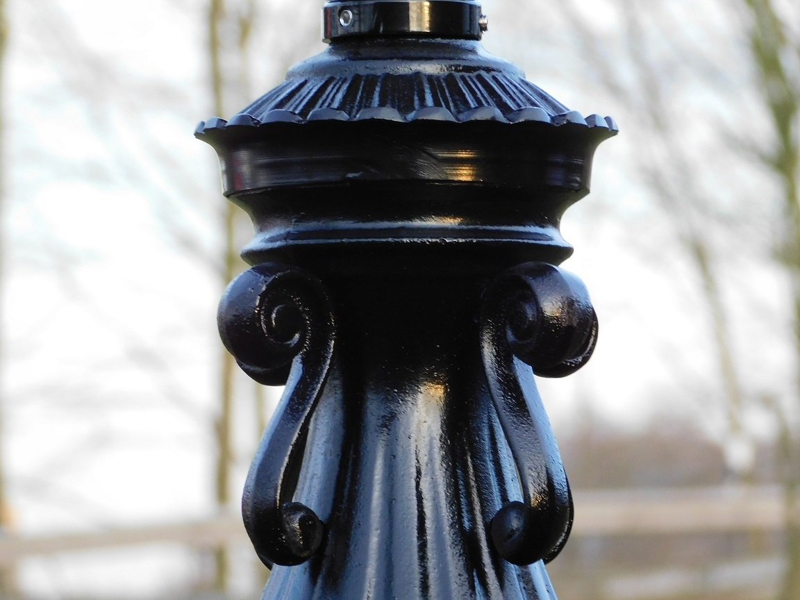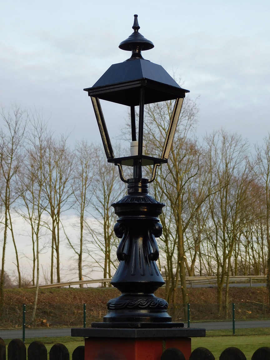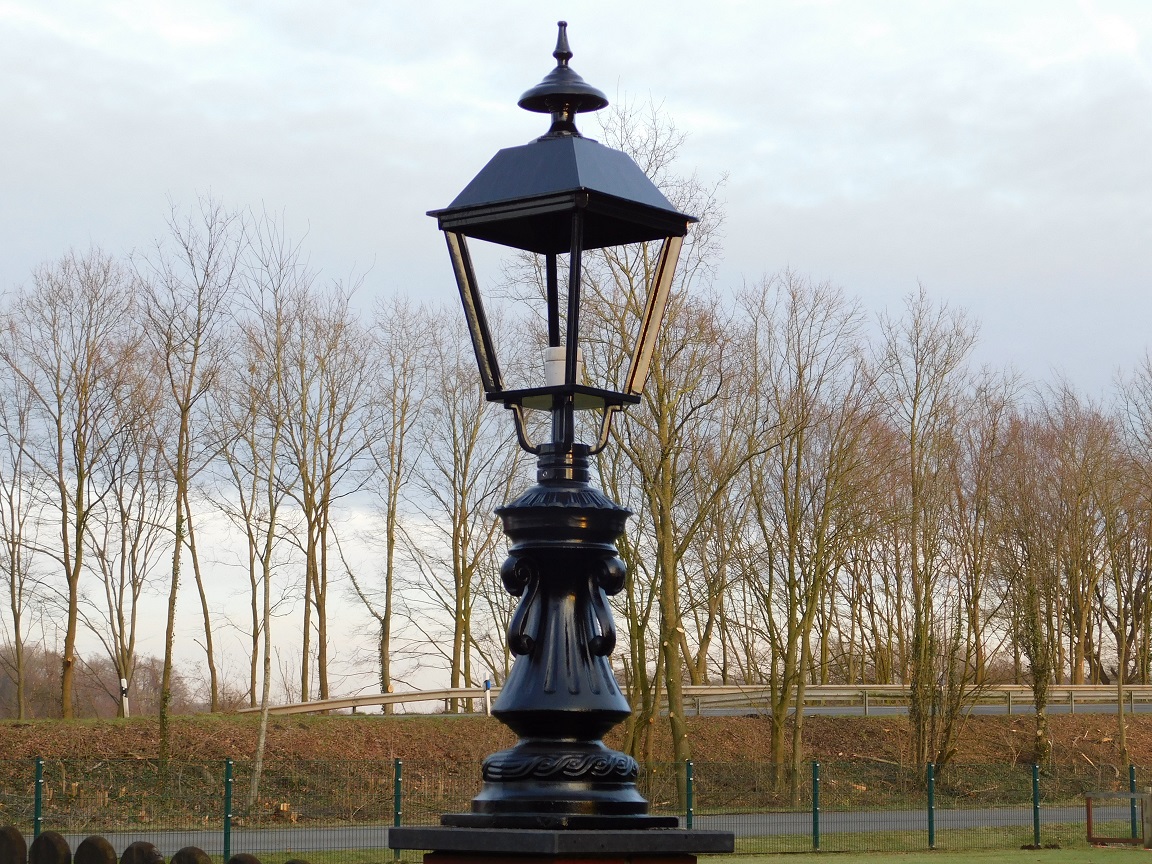 Dank des kompletten Designs, einschließlich Lampenschirm, ist dieser Laternenpfahl sofort einbaufertig.