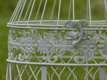 Deze set van twee sierlijke kooien in vintage white is een prachtige tuindecoratie die veelzijdigheid en charme toevoegt aan uw buitenruimte.