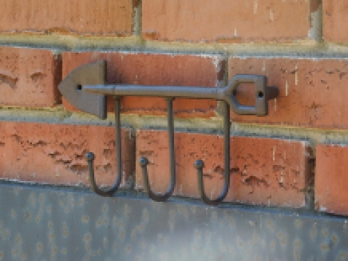 Niedlicher Garderobenständer aus einer Schaufel mit drei Haken.