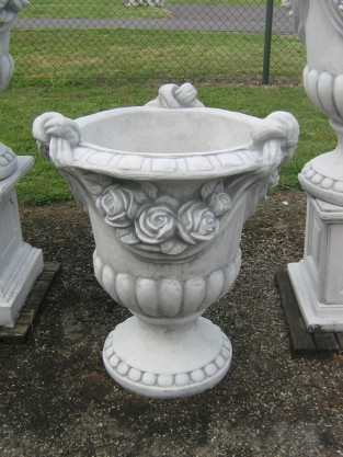 Bloempot zwaar steen, rozenmotief