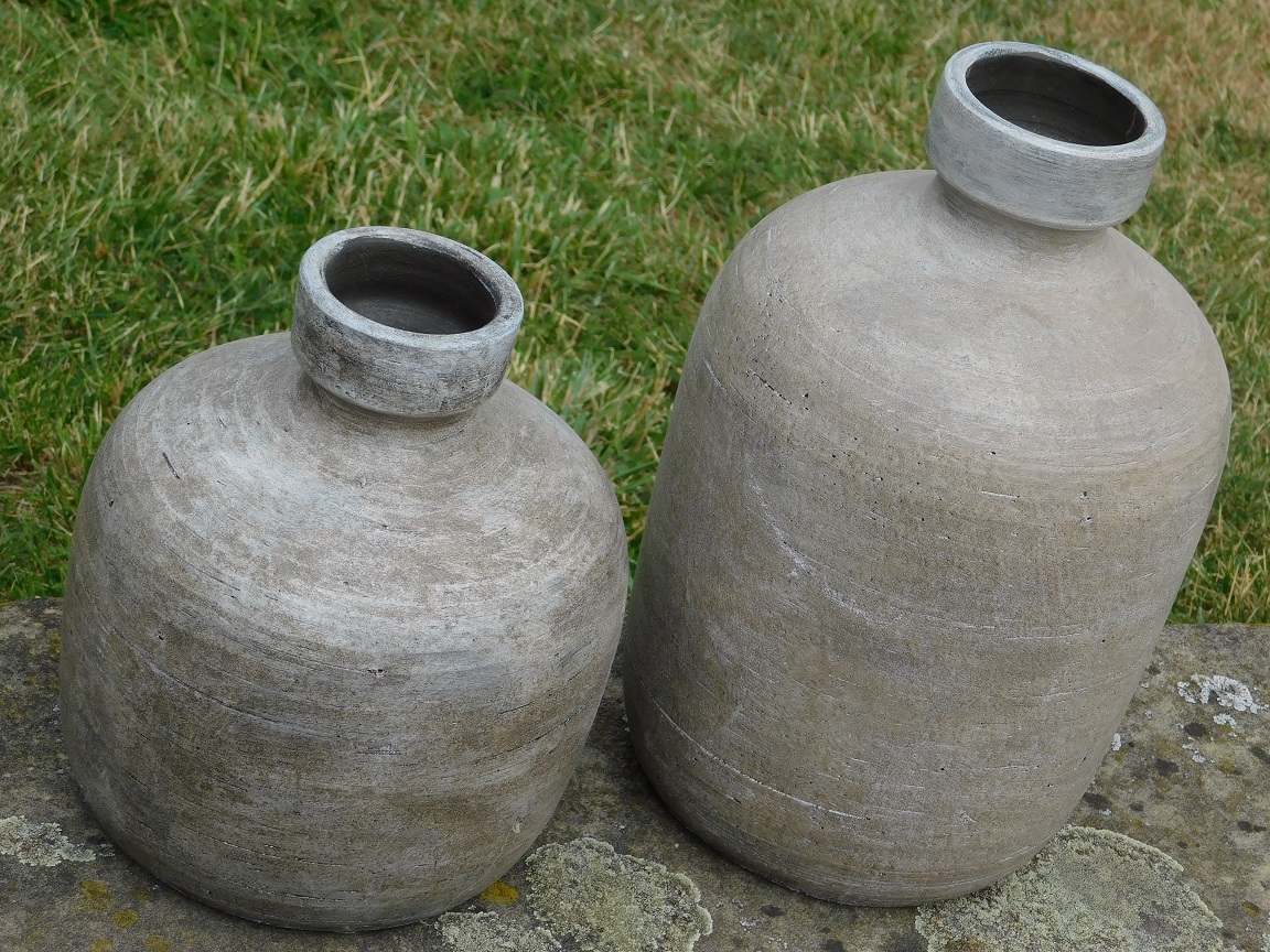 The vintage look and hand-finished ceramic make these vases real eye-catchers.