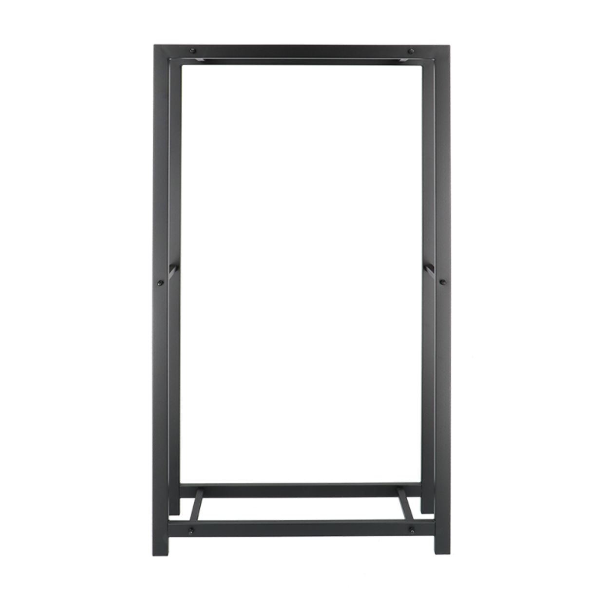 Deze multifunctionele zwarte houtopslag is een waardevolle toevoeging aan elke tuin met voldoende ruimte voor houtopslag.