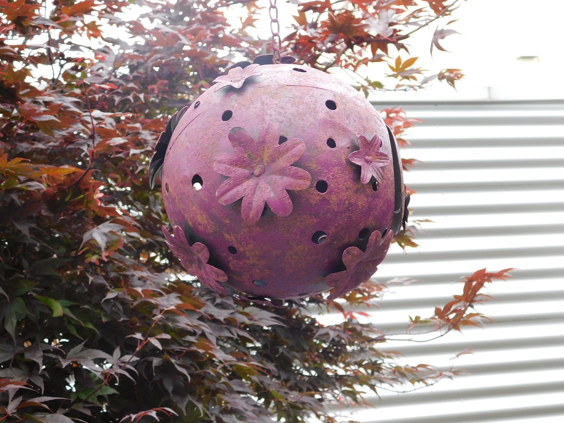 Leuke decoratie voor in de tuin of in huis. Metalen bloembol die u aan een haakje op kunt hangen en vervolgens een kaarsje in kunt doen, zo creëert u veel sfeer in het huis of in de tuin. Het effect door de gaten in de bloembol is gaaf en biedt veel gezelligheid.