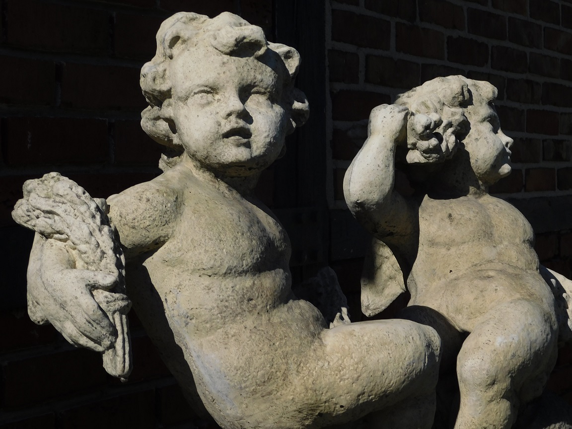 Scope of delivery: 1x vintage set of 2 putti on pedestal, cast stone